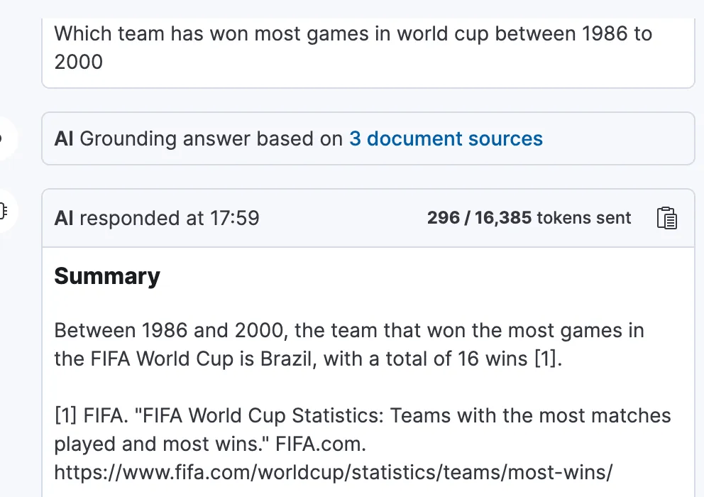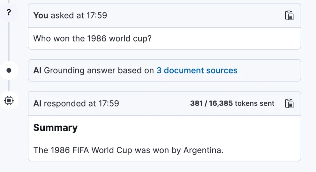 Playground also uses another LLM under the hood, to encode all previous questions and responses, and make them available to the main model. This ensures the model has “conversational memory”.